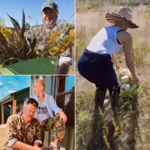 Blake Shelton and Gwen Stefani, country’s golden couple, welcomed the crisp magic of autumn not with a red carpet walk, but with paint-stained hands, flannel shirts, and a porch transformation straight from the heart. Between stolen kisses and bursts of laughter, they turned their Oklahoma front steps into a cozy fall haven, complete with pumpkins, rustic lanterns, and Gwen’s signature floral touches. It wasn’t just a DIY project — it was a glimpse into a love story written in small moments, where fame takes a back seat to the simple joy of building a home together.