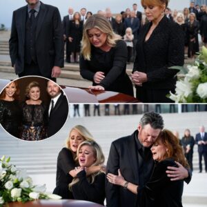 As Kelly Clarkson crumpled beside Brandon Blackstock’s coffin, grief stealing the strength from her legs, one hand reached down to pull her up, another wrapped around her trembling shoulders. They belonged to Carrie Underwood and Reba McEntire—her dearest friends, standing like pillars in the storm. Without a word, the three of them turned toward the mourners, and their voices rose together in “I Will Always Love You.” It wasn’t just a song—it was a last gift to Brandon, and a lifeline to Kelly, a way for Reba and Carrie to pour every ounce of love and comfort into her breaking heart. As the final note faded into the silence, the crowd dissolved into tears—Blake Shelton, Garth Brooks, and everyone in between, unable to hold back the wave of emotion. It was a moment no one there would ever forget.