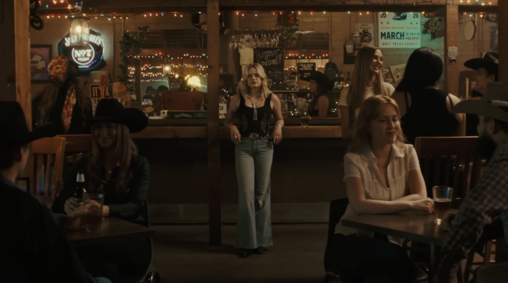 Miranda Lambert might be the video’s biggest cameo, but Kaitlin Butts has the best role: the old flame’s bitchy best friend who accosts Ella in the ladies’ room.